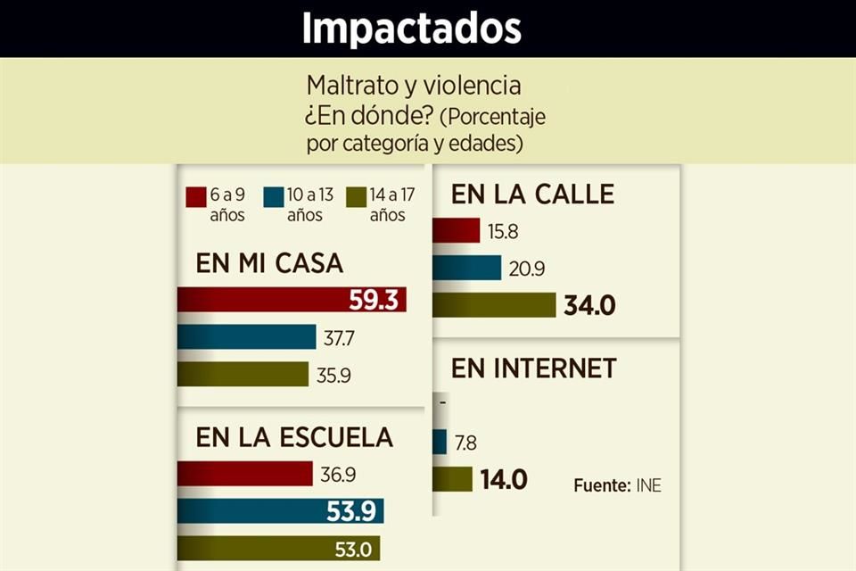 Niños y adolescentes de entre 6 y 17 años reconocen no sentirse seguros ni en la calle ni en la escuela, de acuerdo con la Consulta Infantil y Juvenil 2018, aplicada por el Instituto Nacional Electoral (INE) en noviembre pasado. La consulta -en la que participaron 5 millones 671 mil 384 menores de edad en escuelas, plazas y jardines públicos- revela que los niños y jóvenes dicen estar más seguros en su casa, aunque también consideran que es el lugar donde sufren más violencia física y verbal. En el apartado de seguridad, un 96.5 por ciento de los niños de 6 a 9 años respondió no sentirse protegido en la calle y el 83 por ciento dijo que tampoco lo está en la escuela. En el grupo de 10 a 13 años, 47 por ciento expresó no sentirse seguro en la calle y un porcentaje similar desconfía de internet. Mientras que entre los de 14 y 17 años, un 56 por ciento respondió que no siente tranquilidad en la calle y 43 por ciento no confía en internet. Esta consulta se realiza cada tres años en el mismo año de las elecciones federales. Para vivir en un País mejor, los niños y jóvenes consultados propusieron tener más seguridad, policías amables que no insulten, calles con más seguridad y, en general, erradicar la violencia. Además solicitaron que el Gobierno no robe los recursos públicos y que se erradique la corrupción, entre otras propuestas que serán dadas a conocer el próximo viernes por el INE. "El entorno violento es más evidente para las personas de menor edad que participaron en la CIJ 2018", señaló el INE en un reporte sobre los resultados del proceso realizado en noviembre pasado. "En los grupos etarios más grandes, la representación de la violencia aumenta el umbral de tolerancia y se asimila una disposición a considerar como normales formas de violencia antes intolerables". El 24.2 por ciento de los niños y el 19.2 por ciento de las niñas de entre 6 y 9 años de edad que participaron en la consulta señalaron haber vivido una experiencia de maltrato o violencia. En el rango de 10 a 13 años, el 12.3 por ciento de los niños y 10.1 por ciento de las niñas admitieron haber enfrentado esa situación. La CIJ 2018 encontró que sólo el 10.6 por ciento de los hombres y el 11.4 por ciento de las mujeres de entre 14 y 17 años que participaron tuvieron una vivencia de maltrato o violencia. "Los varones de 6 a 9 años acusan recibir la mayor proporción de violencia entre los tres grupos etarios. En cambio, entre los 14 y los 17 es el segmento de quienes no se identifican con ningún sexo el que recibe más agresión (29.2 por ciento)". El resultado de la consulta estableció que, al enfocar las respuestas de la infancia y la juventud indígena, se hace "especialmente evidente" una dinámica violenta de la sociedad, pues en general se incrementa el porcentaje de incidencia respecto al total de participantes. "Los niños indígenas entre 6 y 13 años refieren haber recibido mayor violencia que las niñas", indicó el balance. "Esta situación se invierte ligeramente en el grupo de 14 a 17, pues son las mujeres (13.7 por ciento) quienes enfrentan algo más de violencia. Así, los niños indígenas se inscriben, como las niñas en general, en un grupo de vulnerabilidad que les hace susceptibles a la violencia desde edades tempranas". El reporte del INE indicó que el fenómeno de la violencia hacia los mexicanos más jóvenes es "una situación grave, contraria a la vigencia de una sociedad democrática".