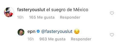 De entre los 4 mil 488 comentarios se puede leer el de una mujer que le declaró su amor: "Soy a la única que no le responde. Lo quiero, mi Lord hermoso bebé guapo. Yo siempre lo apoyo, si no cree vea mis historias destacadas", a lo que que el primer mandatario respondió: "Eres correspondida" acompañado con un corazón. Mientras que otra usuaria le escribió: "Lo quiero", aunque con ella se limitó sólo a responder con un emoji de corazón. Sus seguidores de Instagram le reiteraron que es el suegro de México, comentario que no le agradó mucho, porque puso una carita de molestia (¬¬).