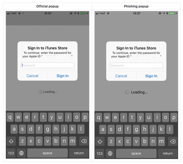 Un desarrollador de aplicaciones móviles descubrió que es muy fácil recrear las ventanas de inicio de sesión de iTunes o App Store