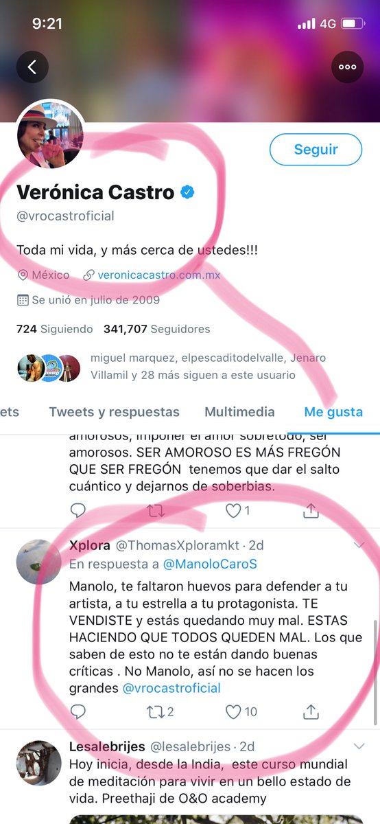 Y no sólo reaccionó a esta publicación; en Twitter comenzó a dar “like” a los comentarios desfavorables a “La Casa de las Flores 2” y comenzó a seguir a los autores de estos.
